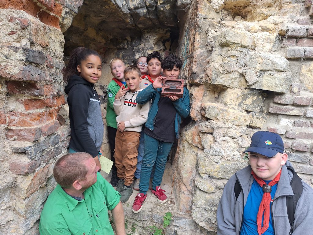 En waar kwamen ze uiteindelijk terecht? Bij de indrukwekkende ruïne van Kasteel Eyckholt, een echt Middeleeuws riddergoed! 🏰 Daar vonden ze eindelijk de sleutel terug.