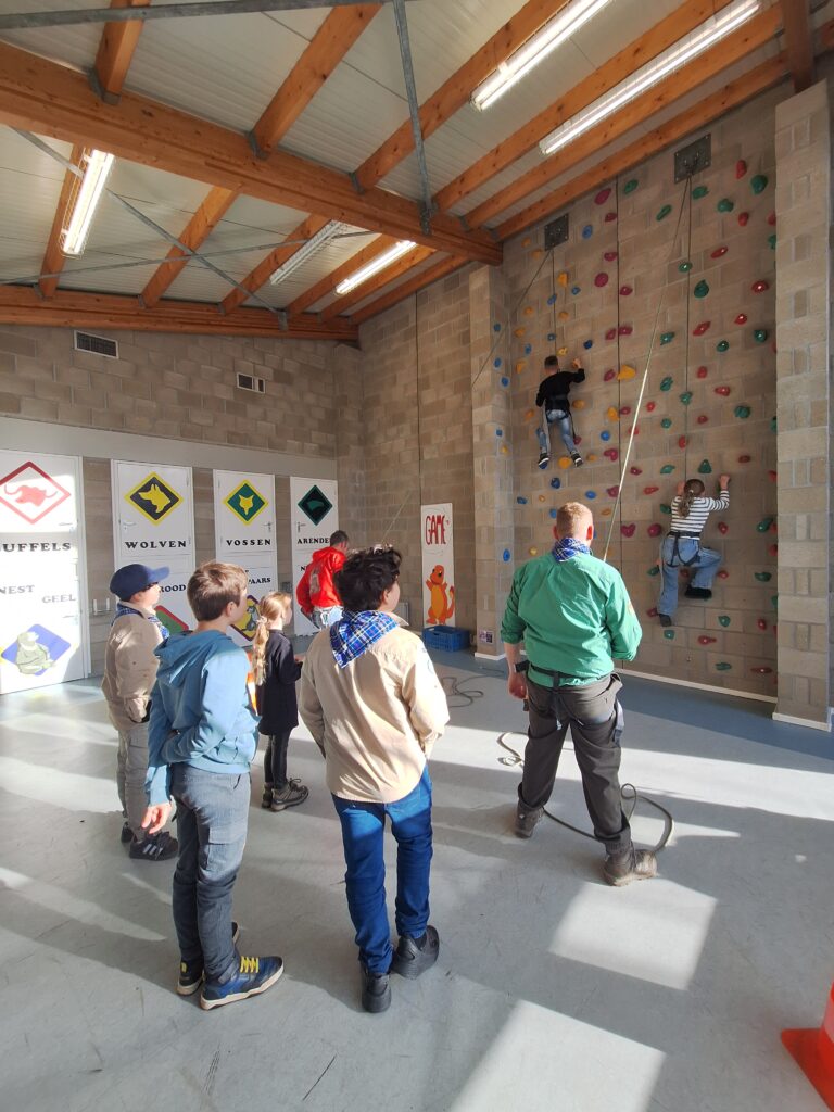 🧗♂️ Wandklimmen – eindelijk was het zover! De kinderen keken hier al weken naar uit en wat deden ze het goed. Hier kwamen flexibiliteit en moed goed van pas!